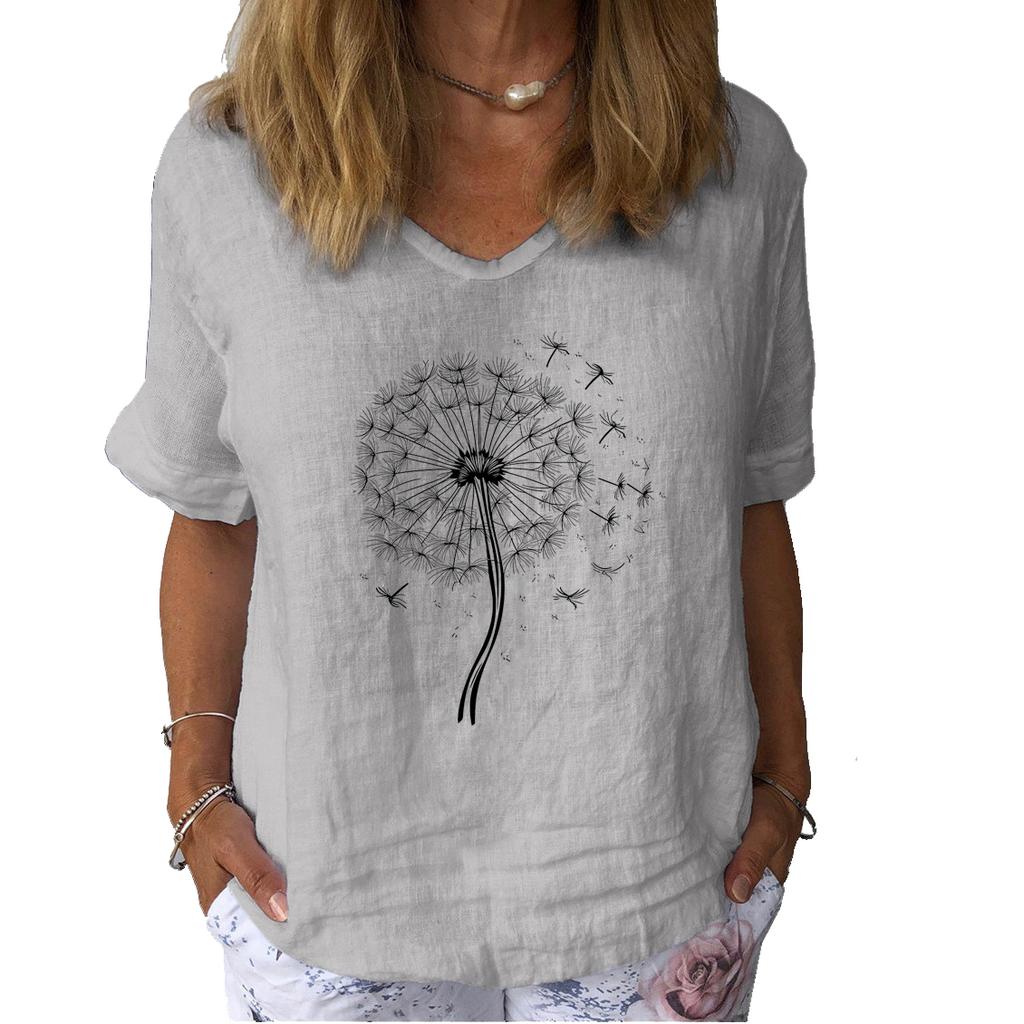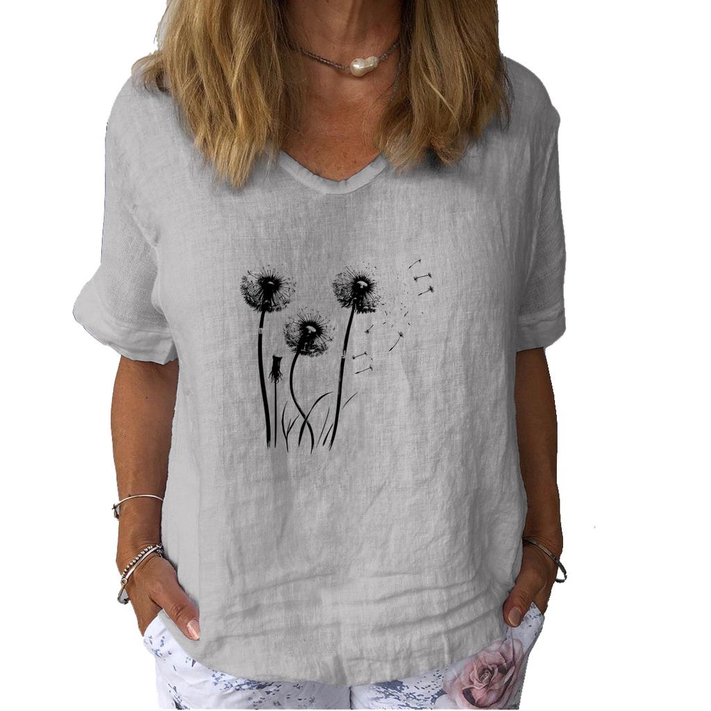 Женская модная льняная блузка, летняя повседневная футболка с коротким рукавом, женский пуловер с цветочным принтом, свободный топ