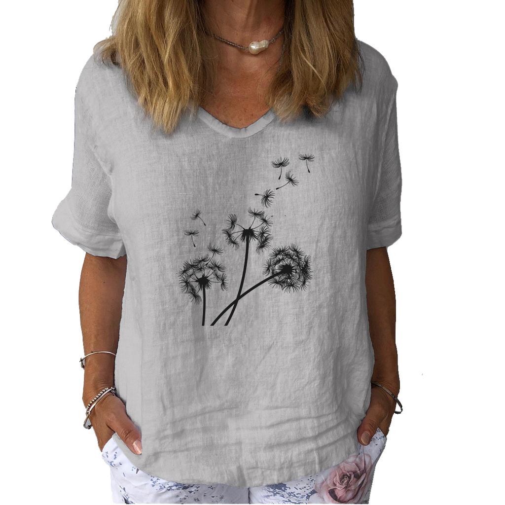 Женская модная льняная блузка, летняя повседневная футболка с коротким рукавом, женский пуловер с цветочным принтом, свободный топ