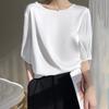 Женская рубашка из искусственного шелка с рукавом пять четвертей, свободным кроем и круглым вырезом, блузки и рубашки — купить товар онлайн с бесплатной доставкой по всему миру!