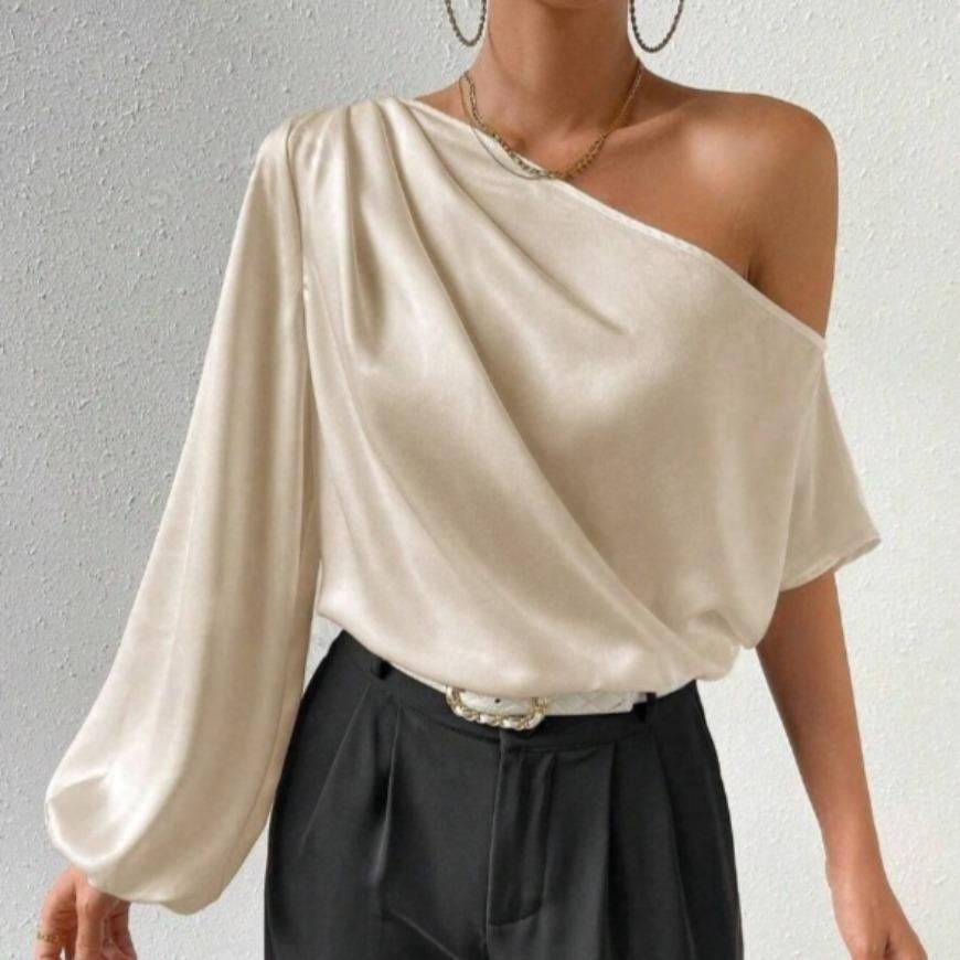 Женская рубашка с косыми плечами и длинными рукавами, однотонная, сексуальная, с открытыми плечами, свободная, темпераментная, атласные блузки и рубашки — купить товар онлайн с бесплатной доставкой по всему миру!