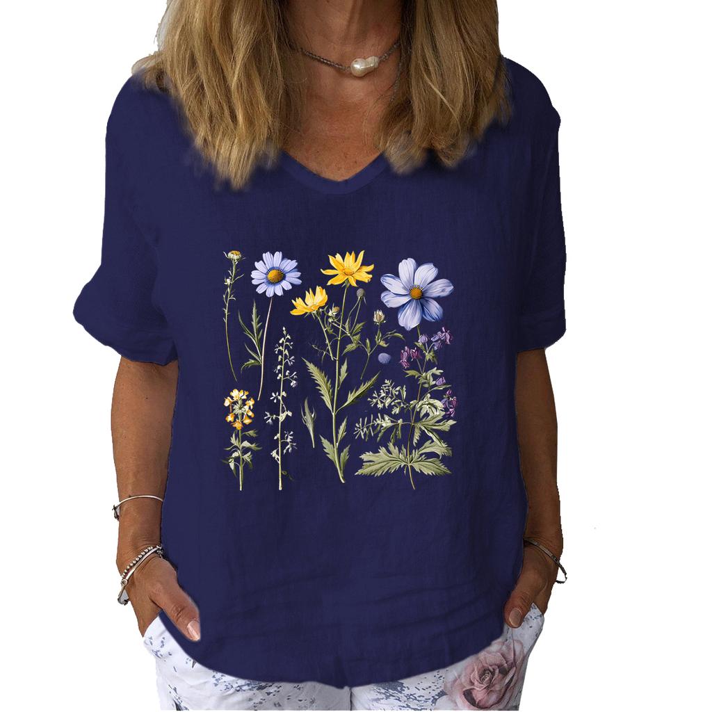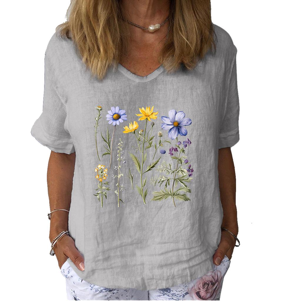 Женская модная льняная рубашка с принтом, летняя повседневная рубашка с коротким рукавом, женский пуловер с цветочным принтом, свободная блузка