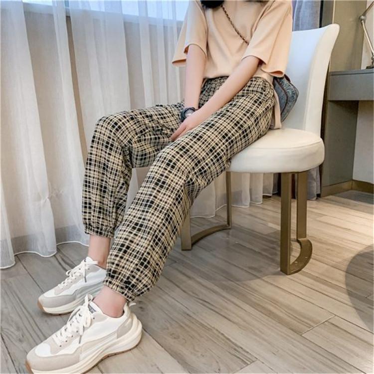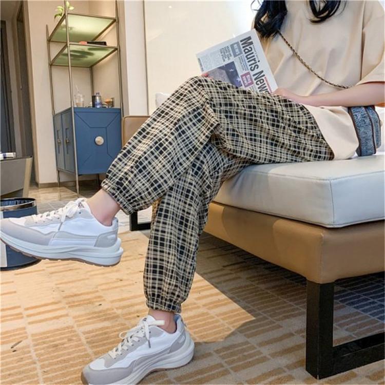 Новые женские брюки леггинсы новые весенние и осенние клетчатые маленькие свободные повседневные спортивные штаны