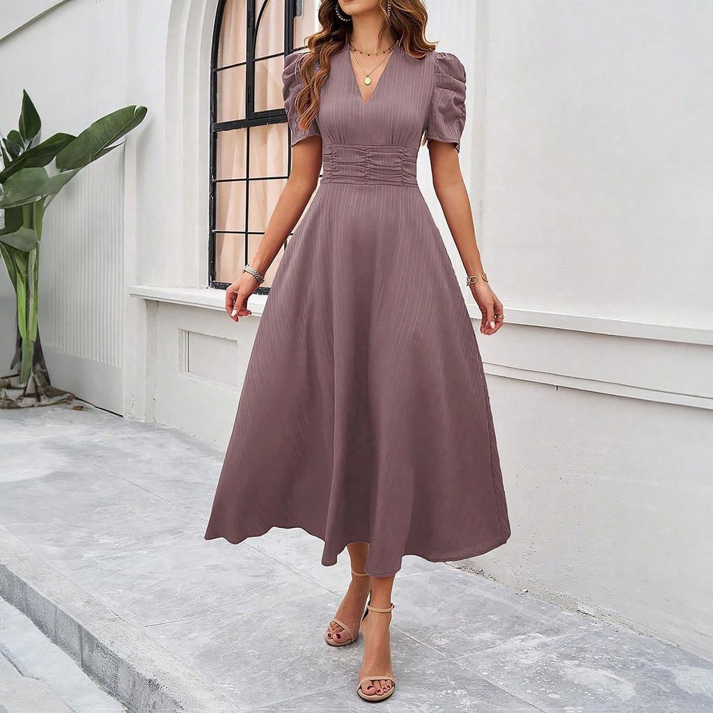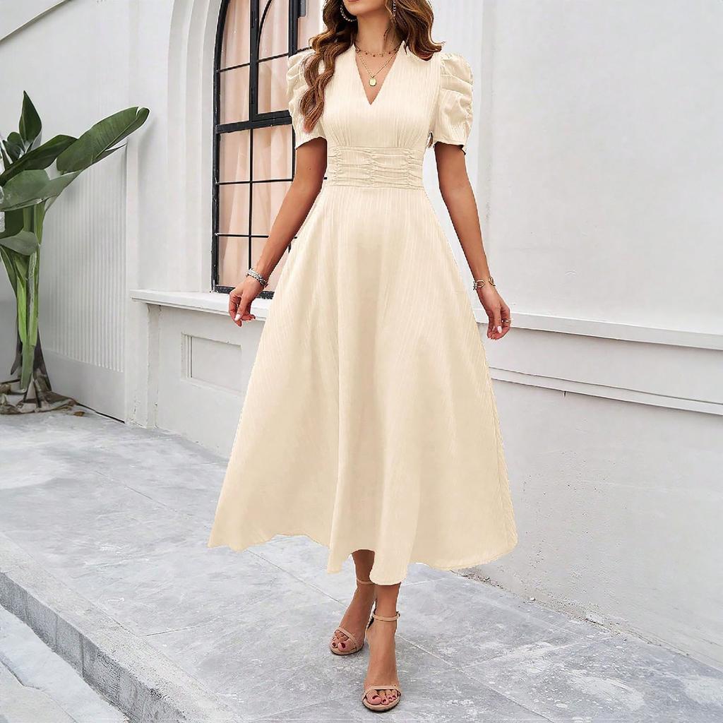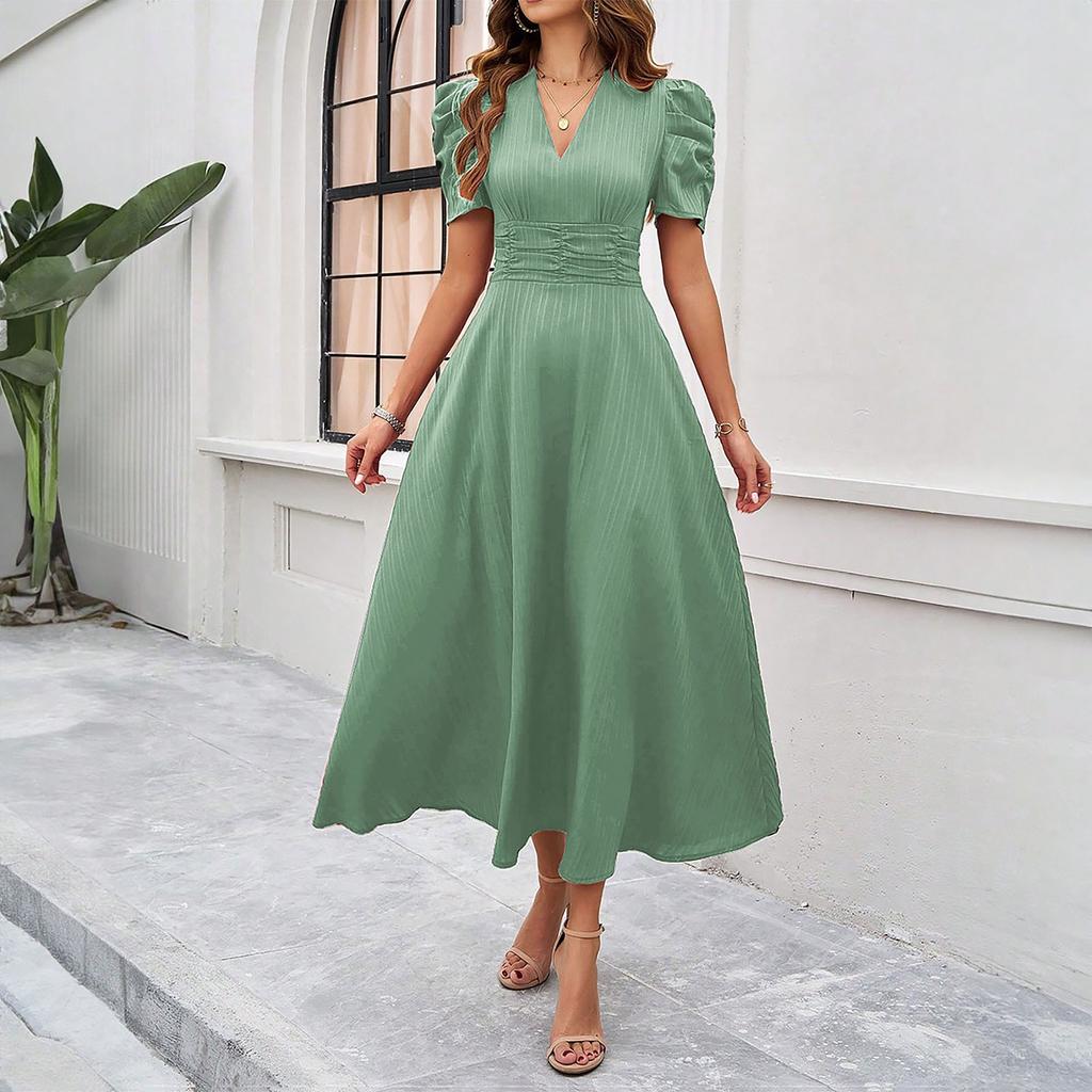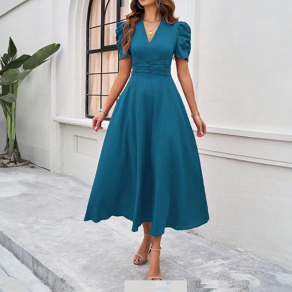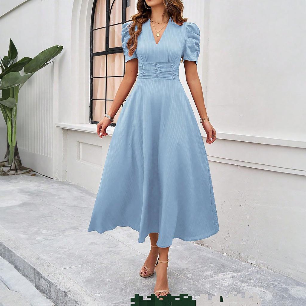 Женское модное темпераментное платье с высокой талией и короткими рукавами