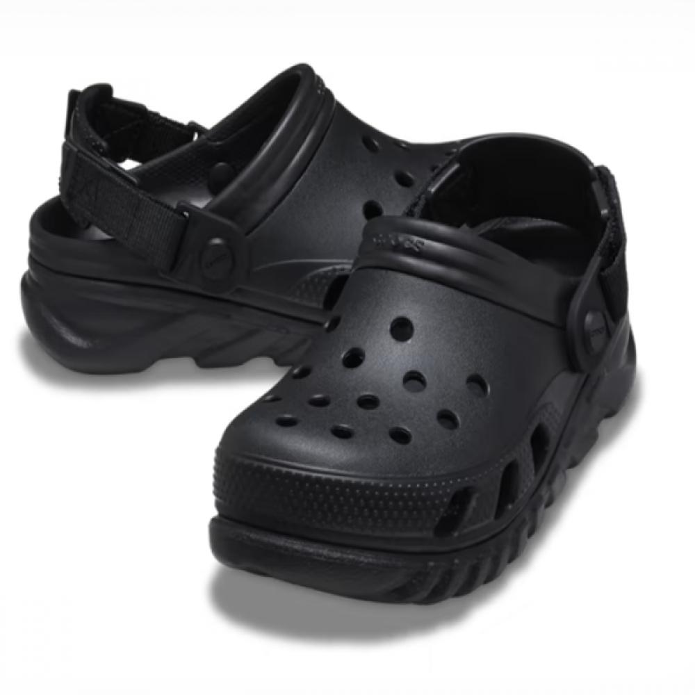 The Crocs Duet Max 2 Clog is designed for those who value comfort and versatility. Made from the patented Croslite material, these clogs provide all-day support and cushioning, making them ideal for prolonged wear. The supportive arch and soft footbed contour to your foot, ensuring a snug fit. The shoe is also easy to clean and maintain, allowing for a carefree wear experience. Despite their casual appearance, these clogs are engineered to offer optimum grip and traction on various surfaces, making them suitable for both indoor and outdoor use.
