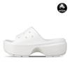 Introducing the Crocs Women's Platform Slide Sandal in White (Model: 208180-100). This stylish and comfortable sandal merges contemporary design with the well-known Crocs comfort technology. Its sleek white color adds versatility to any outfit. Made from high-quality EVA, these sandals are perfect for summer wear, offering durability and ease of cleaning.