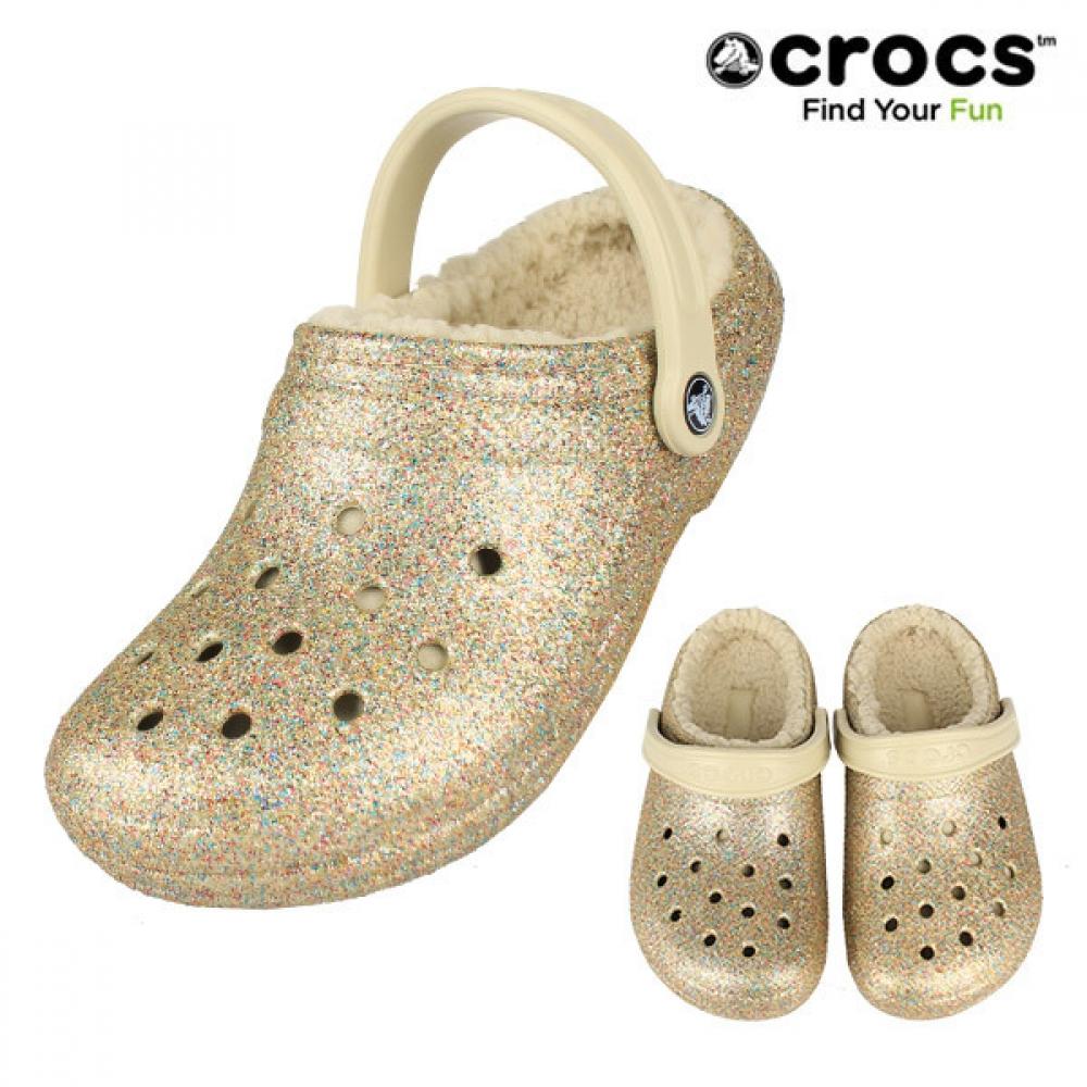 Crocs Классические клоги с блестками и подкладкой Тюль 205842 93s Золотой — купить товар онлайн с бесплатной доставкой до всему миру!
