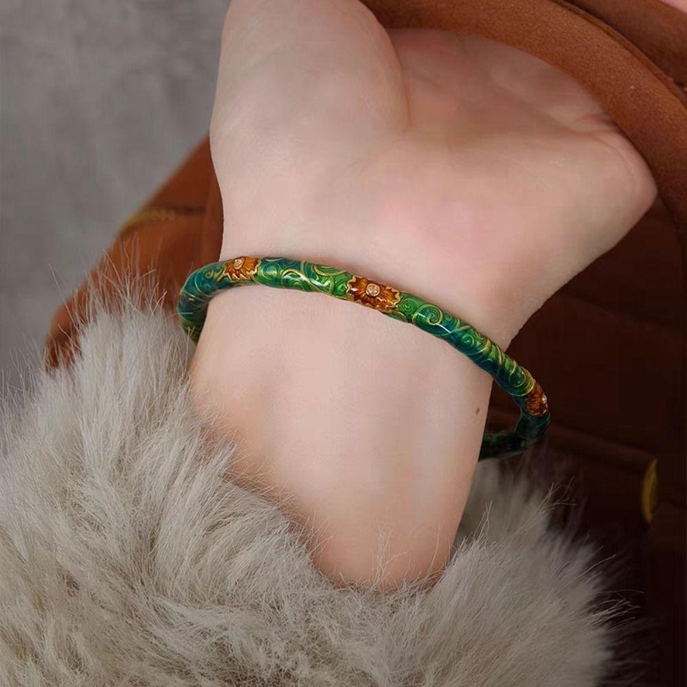 Браслет-кольцо с китайской перегородчатой эмалью, изысканный браслет-манжета с филигранным цветочным узором, женский эмалевый браслет, подарки