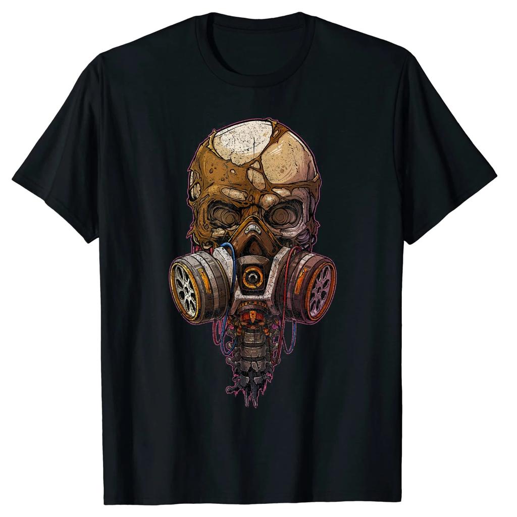 Футболка с рисунком черепа зомби в противогазе на Хэллоуин. Хлопковая мужская футболка премиум-класса с коротким рукавом и круглым вырезом, новинка S-3XL