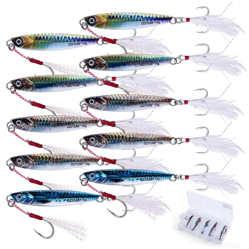 Goture Metal Jig Set of Sea Boat Lure Metal Jig Slow High Flying 3D Laser Real Red Sea Root Blue Rich Storage Box Included 10, 15g, Jigging, Fishing,
