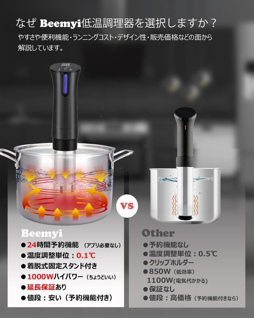 Причина, по которой мясо становится сухим и жестким при традиционной кулинарной обработке, заключается в том, что его нагревают при высоких температурах, что денатурирует белки и приводит к тому, что влага, которая удерживает вкус, вытекает.. Чтобы сохранить соки и сделать мясо нежным и сочным, его необходимо нагреть до температуры, при которой мясо станет жестким.. «Усовершенствованная низкотемпературная плита» Помимо стильного дизайна, простоты эксплуатации и тонкой конструкции, которая не занимает много места, эта высокопроизводительная модель может выдерживать использование в суровых профессиональных условиях.. ``Великолепный продукт, который можно использовать для приготовления практически чего угодно'' От классического мяса до рыбы, овощей и сладостей — все блюда станут лучше, если их разогреть при температуре, соответствующей ингредиентам.. Это универсальная плита, в которой можно приготовить любую пищу, требующую разогрева.. Его используют многие рестораны, и он позволяет готовить даже блюда профессионального уровня.. Наша низкотемпературная готовка имеет следующие шесть преимуществ:. [Мощность 1000 Вт и циркуляция воды на 360°] Плита оснащена мощным приводом 1000 Вт, который быстро достигает заданной температуры и может разогревать большие блюда при постоянной температуре.. Наша низкотемпературная варочная машина оснащена системой циркуляции воды на 360°, поэтому после достижения заданной температуры горячая вода продолжает циркулировать, нагревая пищу в вакуумном состоянии, поддерживая при этом равномерную температуру..