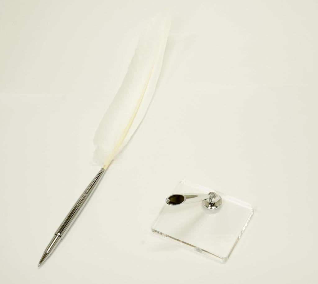 Латунная дисковая ручка с гусиным пером прозрачная акриловая подставка для ручки с серебристым держателем для ручки белое перо японская обработка + Q-S6P2WG-1-W