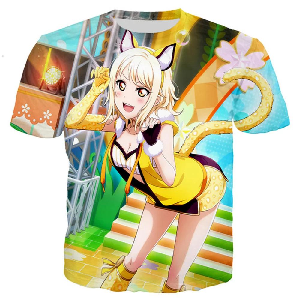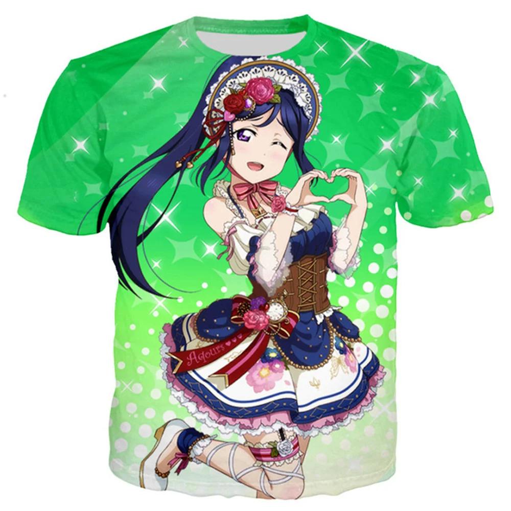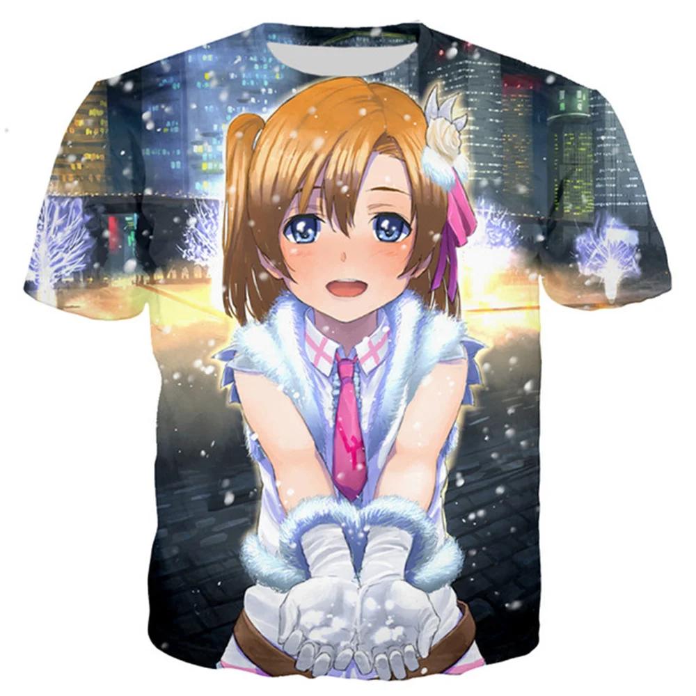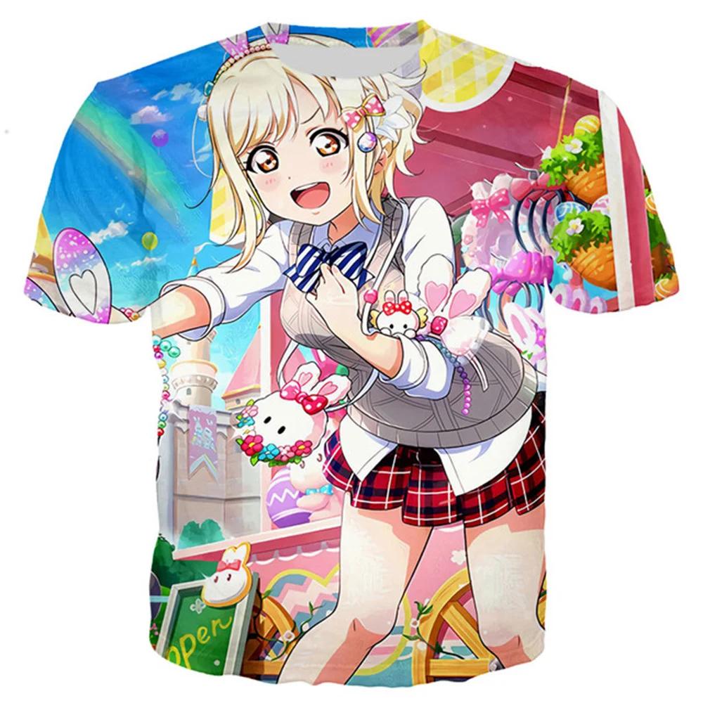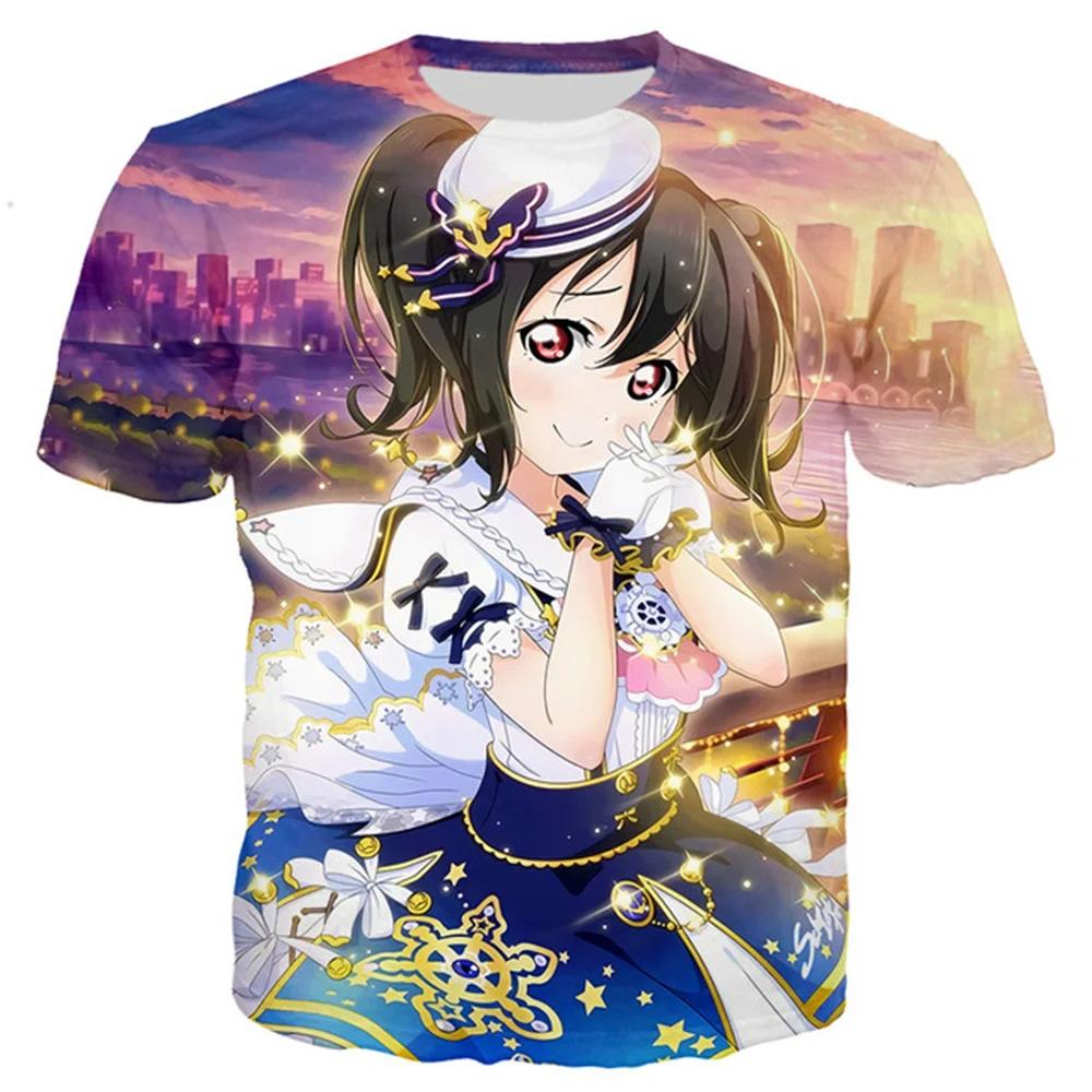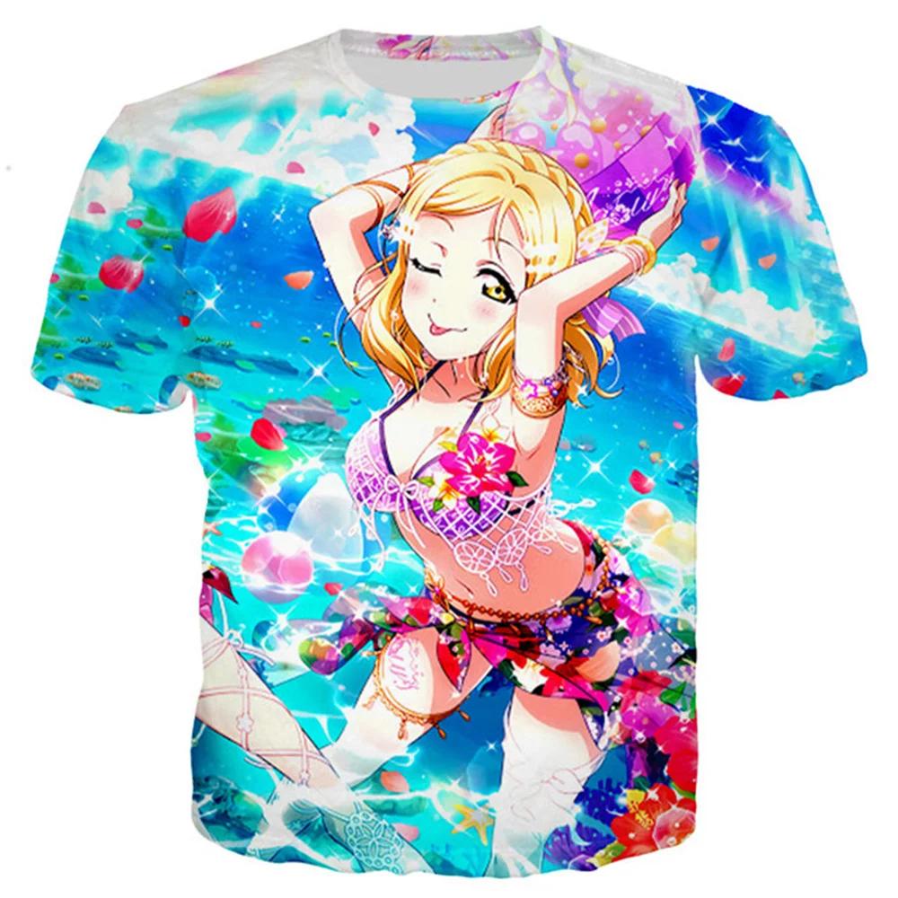 Лето 2024 года, новинка, 3D-печать, сексуальная аниме-пляжная девушка, мужская и женская мода, Love Live, футболка, повседневный стиль, рубашки, свободная одежда
