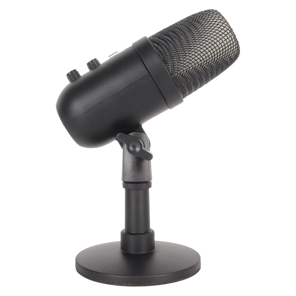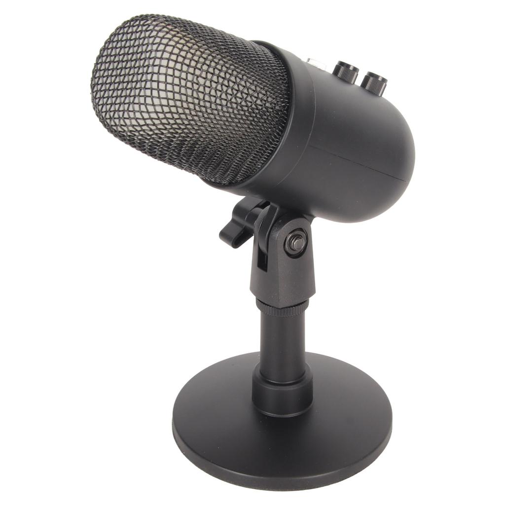 1. Управление усилением: Конденсаторный USB-микрофон оснащен профессиональным регулятором усиления, который уменьшает усиление для эффективного снижения уровня шума в помещении и вращается против часовой стрелки для увеличения чувствительности.. Имеет функцию, которую можно настроить с помощью специального регулятора уровня и отключить при необходимости.. С эффектом RGB-подсветки.
