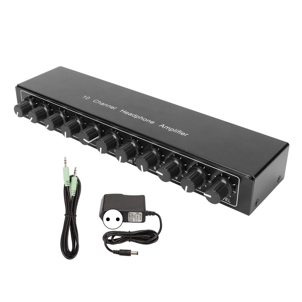 Усилитель для стереонаушников 1 в 10 выходов Портативный 10-канальный усилитель для наушников 100‑240 В ЕС вилка