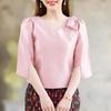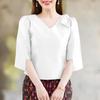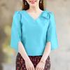 ZANZEA Женская летняя свободная повседневная блузка с V-образным вырезом и рукавом 3/4