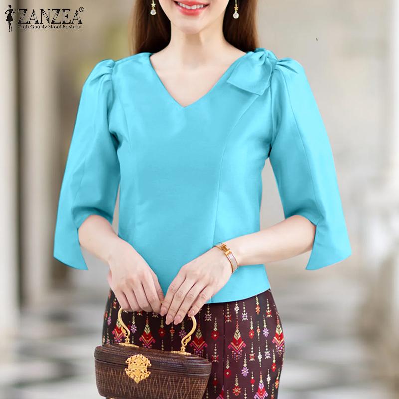ZANZEA Женская летняя блузка с V-образным вырезом и рукавом 3/4, свободная, повседневная — купить товар онлайн с бесплатной доставкой по всему миру!