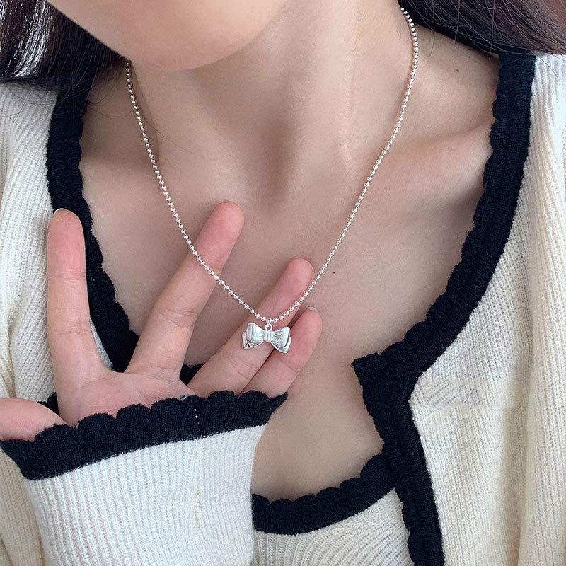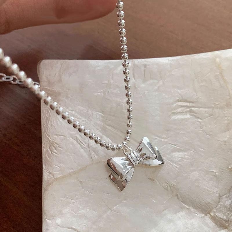Темперамент, ловкость, бант, ожерелье из круглых бусин, цепочка для свитера, нишевый дизайн, симпатичная цепочка на ключицу для девочки