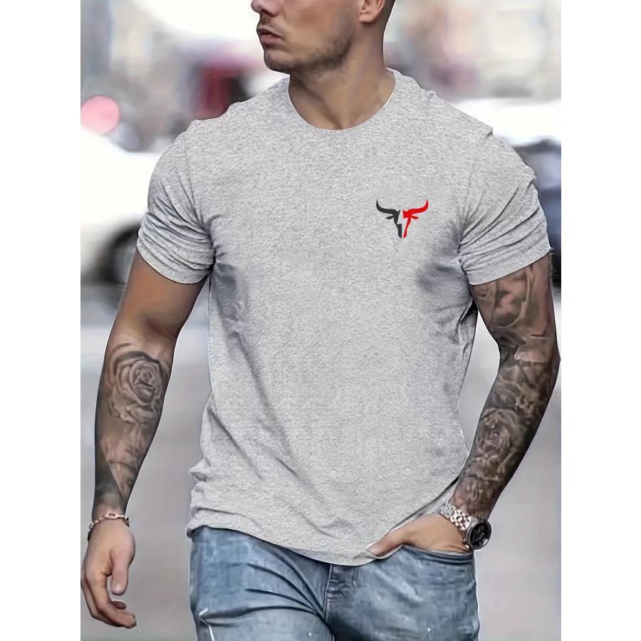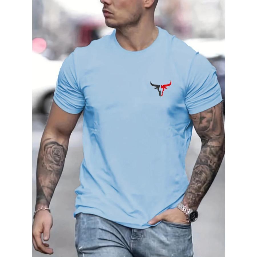 Летняя мужская повседневная футболка свободного размера из 100% хлопка с принтом быка, круглым вырезом и коротким рукавом, мужская уличная одежда