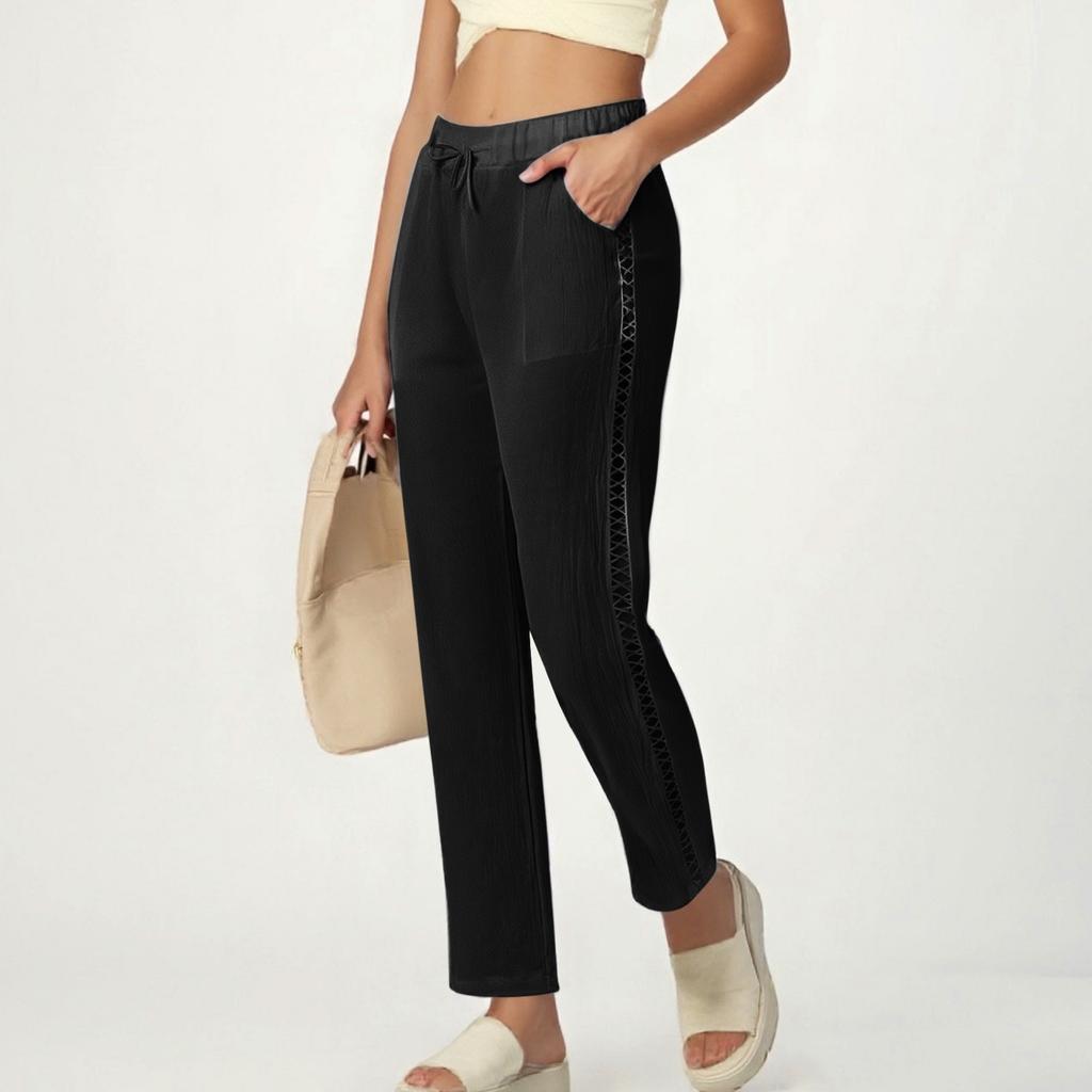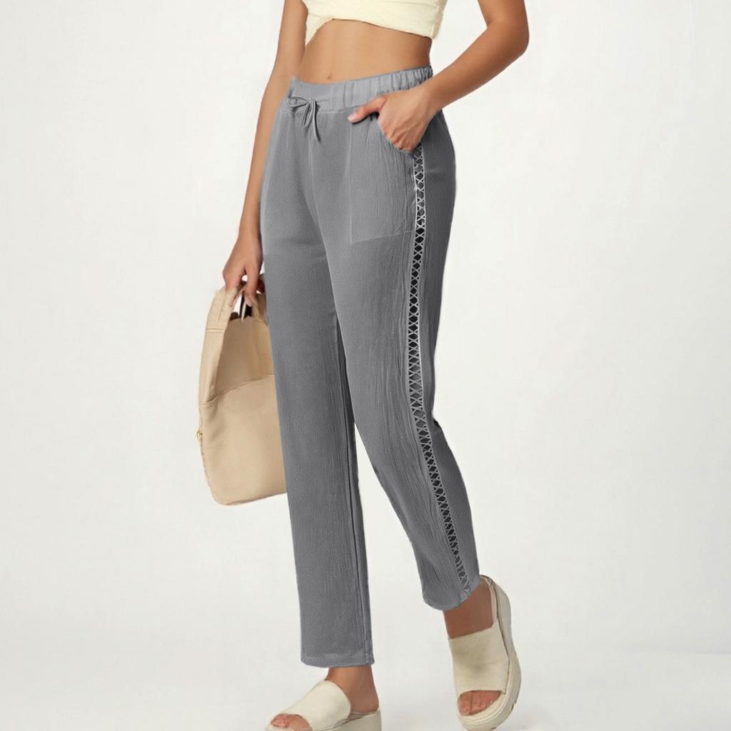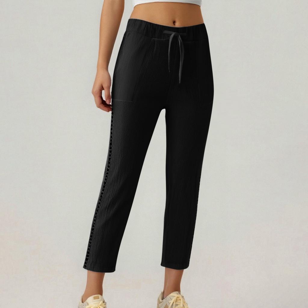 Женские модные мешковатые брюки с карманами, тонкие дышащие кружевные края, полые однотонные повседневные брюки в стиле ретро