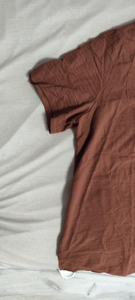 Подошла на объем груди 126 , но не стирала ещё, цвет ооочень тёмный, по сравнению с карточкой товара, к брюкам не подходит, фасон тоже отличается, в частности на рукавах отсутствуют отвороты. На фото смотрится намного интереснее и длиннее, чем есть на самом деле. Ткань приятная, плотненькая. Заказала такую же белую, не дождавшись этого заказа, теперь расстроена. Выглядит совсем не так. Простая футболка.