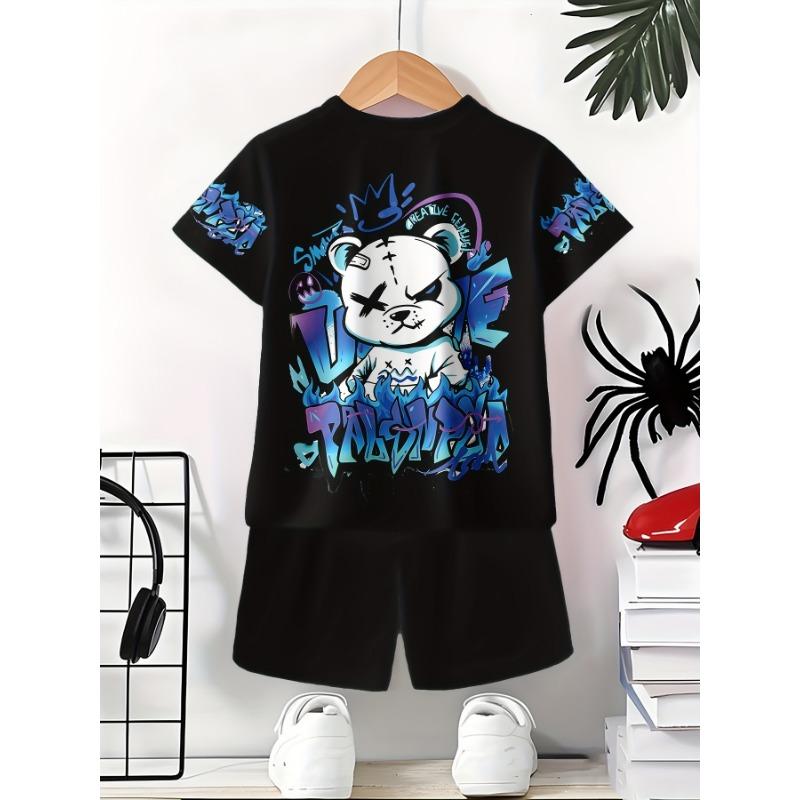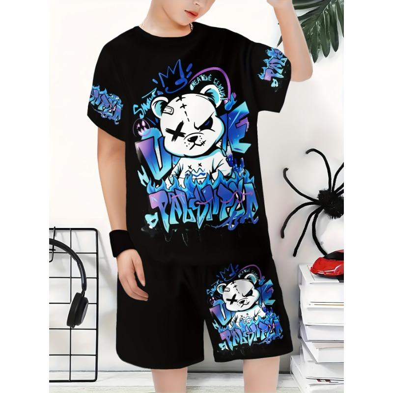 дети унисекс,короткий рукав,3D печать,лето,футболки,шорты,комплекты одежды,две части,мультяшный,повседневный,