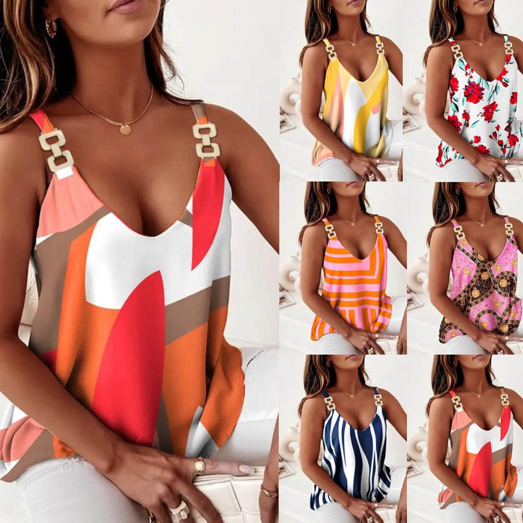 Женская летняя майка без рукавов с принтом, женская майка с V-образным вырезом, повседневные топы