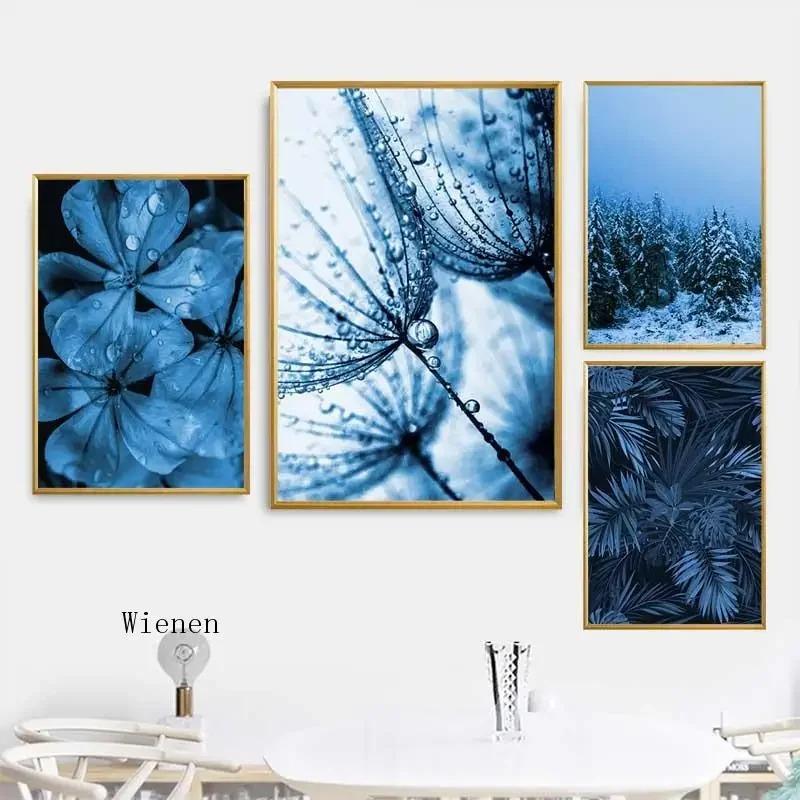 Скандинавский Простой Настенный Арт Синий Лист Растения Одуван Суккулент HD Холст Живопись Дом Гостиная Спальня Декоративный