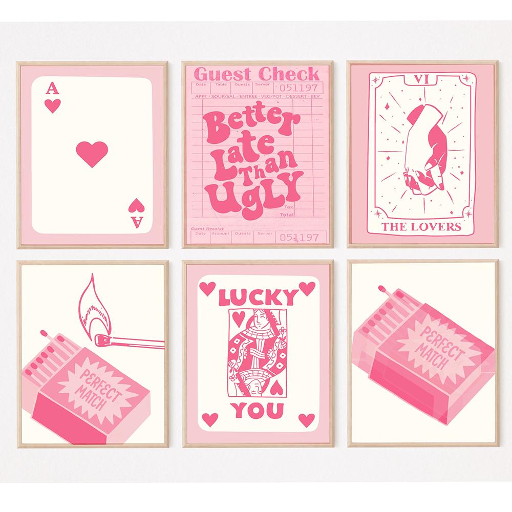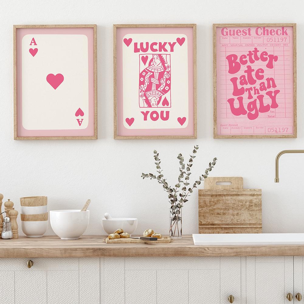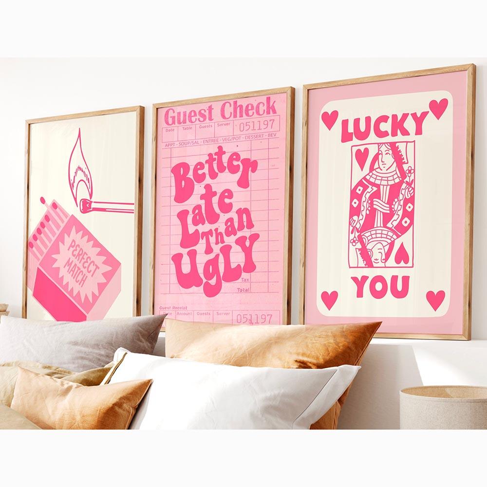 Плакат Lucky You с розовым принтом, настенное искусство, ретро, модное, эстетичное, забавное, искусство, минималистская картина на холсте, декор для дома и спальни