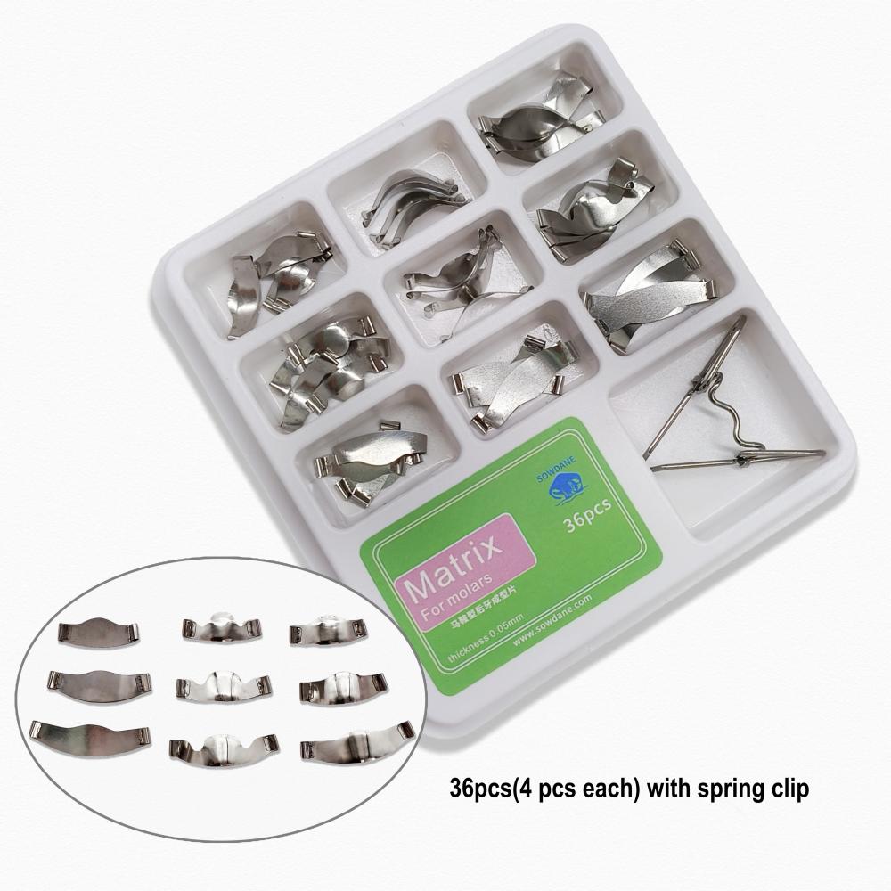 18 шт. или 36 шт. высококачественных стоматологических седловидных контурных металлических матриц, набор матриц, стоматологические секционные матрицы, универсальный набор с пружинным зажимом