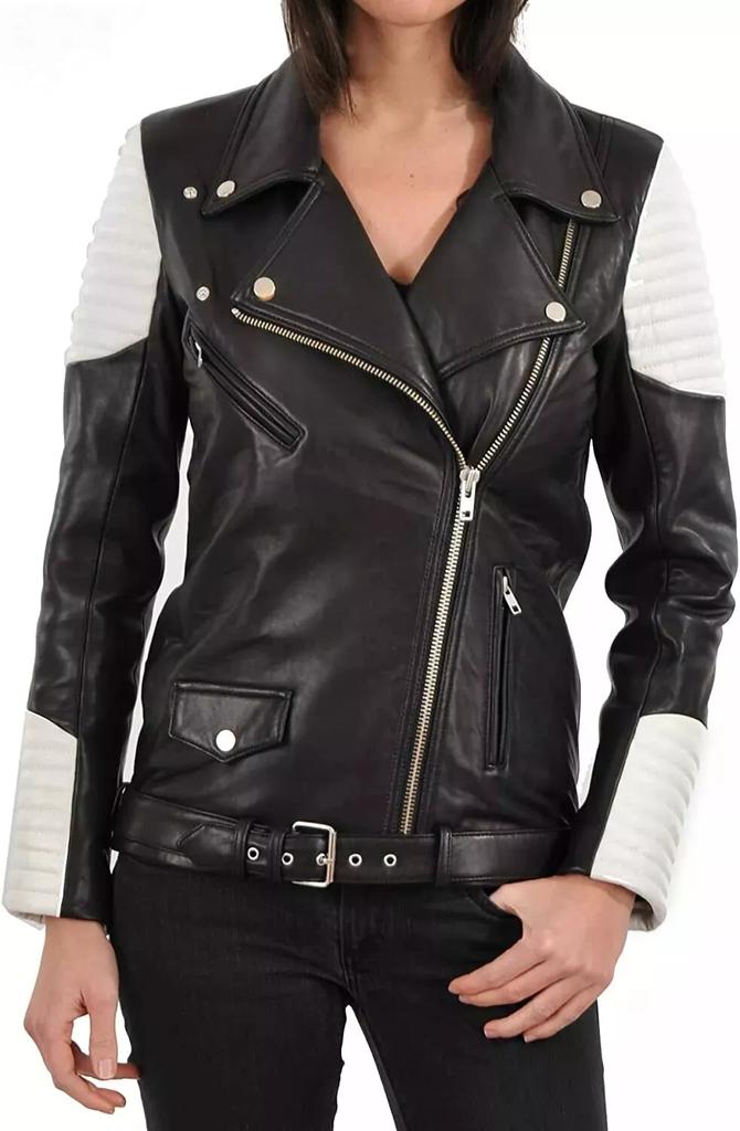 Стильная женская куртка ручной работы для байкера, мотоциклетная, черная, из натуральной кожи ягненка