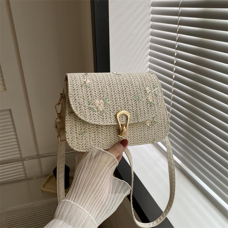 Модная соломенная плетеная сумка для женщин, новый стиль, маленькая свежая кружевная цветочная плетеная сумка-седло, модная сумка через плечо на одно плечо — купить товар онлайн с бесплатной доставкой по всему миру!