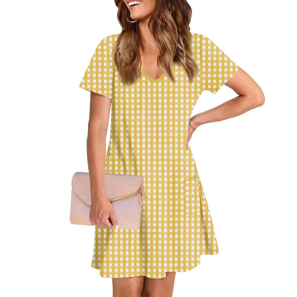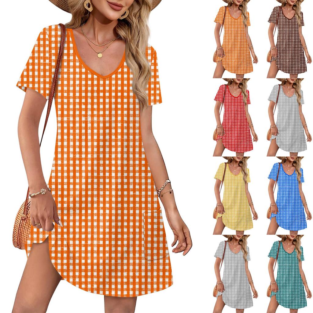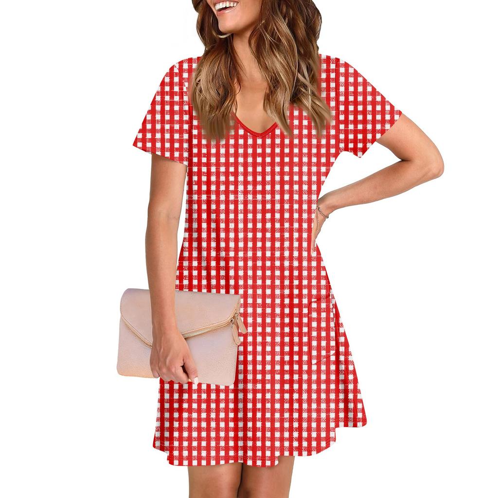 Женское повседневное и модное платье средней длины с V-образным вырезом и коротким рукавом с принтом