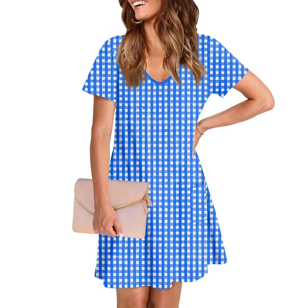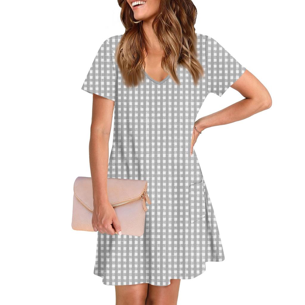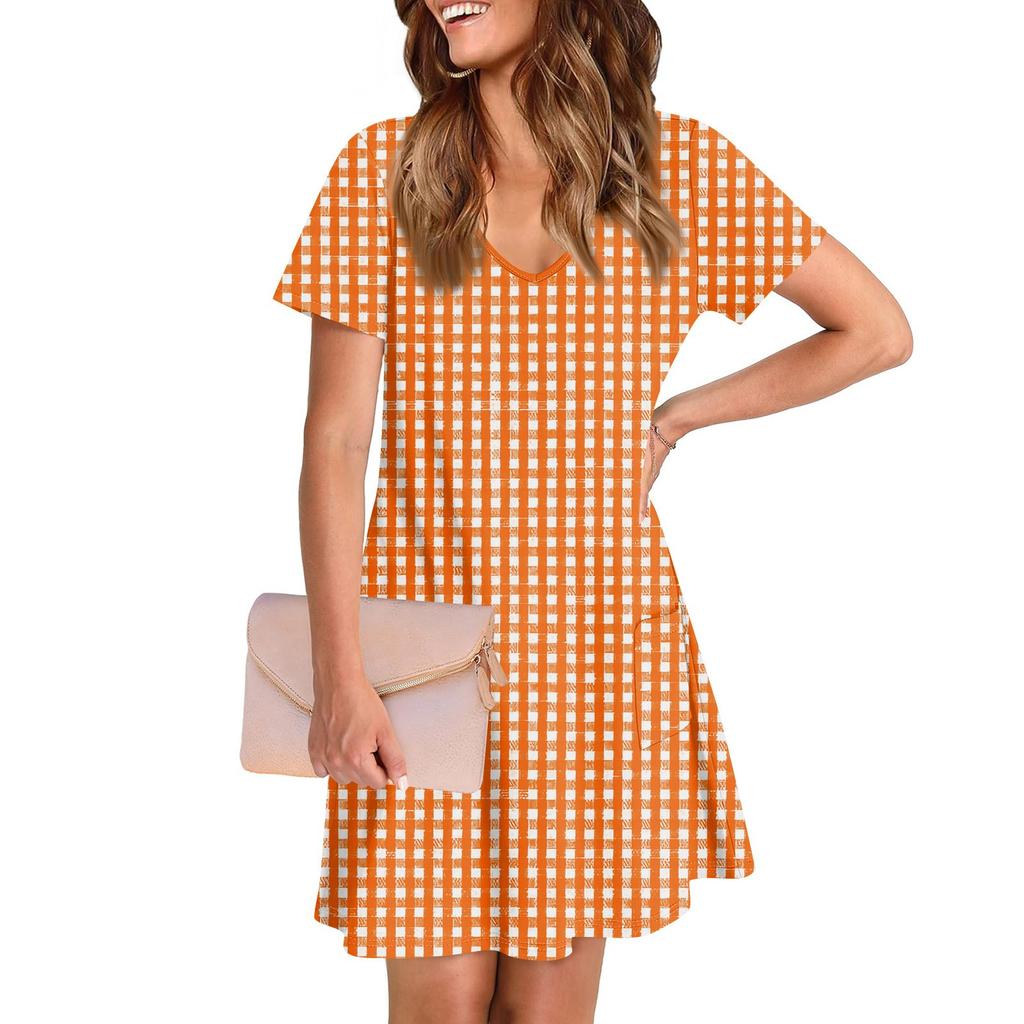 Женское повседневное и модное платье средней длины с V-образным вырезом и коротким рукавом с принтом