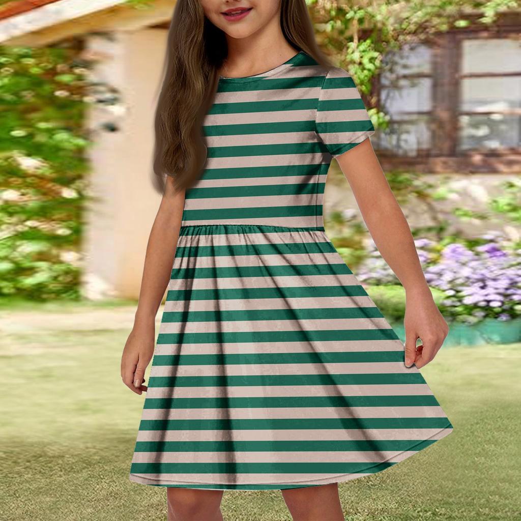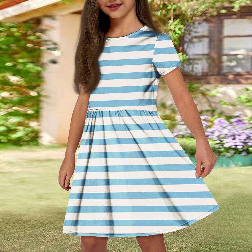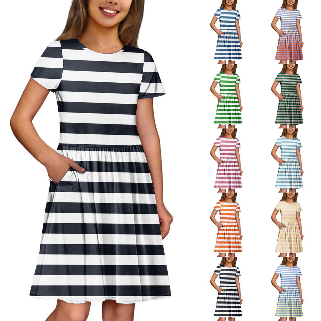 Летнее платье для девочек, однотонное платье без рукавов с принтом и карманом, повседневное платье, вечернее платье с короткими рукавами