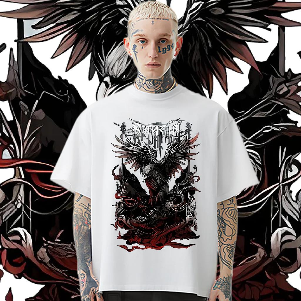 Футболка Black Wings Raven, свободные футболки из молочного волокна, ретро-топы для мужчин, свободная футболка высокого качества, модные уличные топы