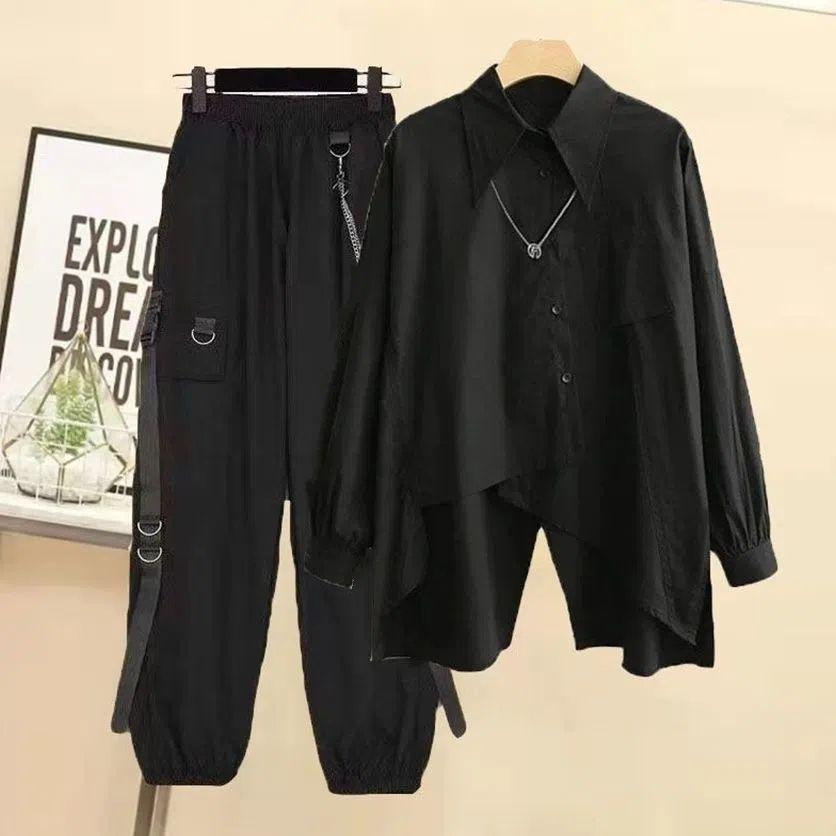 Женский летний костюм-рубашка с короткими рукавами, корейская версия свободного дизайна, повседневный костюм, красивый комбинезон, костюм из двух частей, цепочка для брюк — купить товар онлайн с бесплатной доставкой по всему миру!
