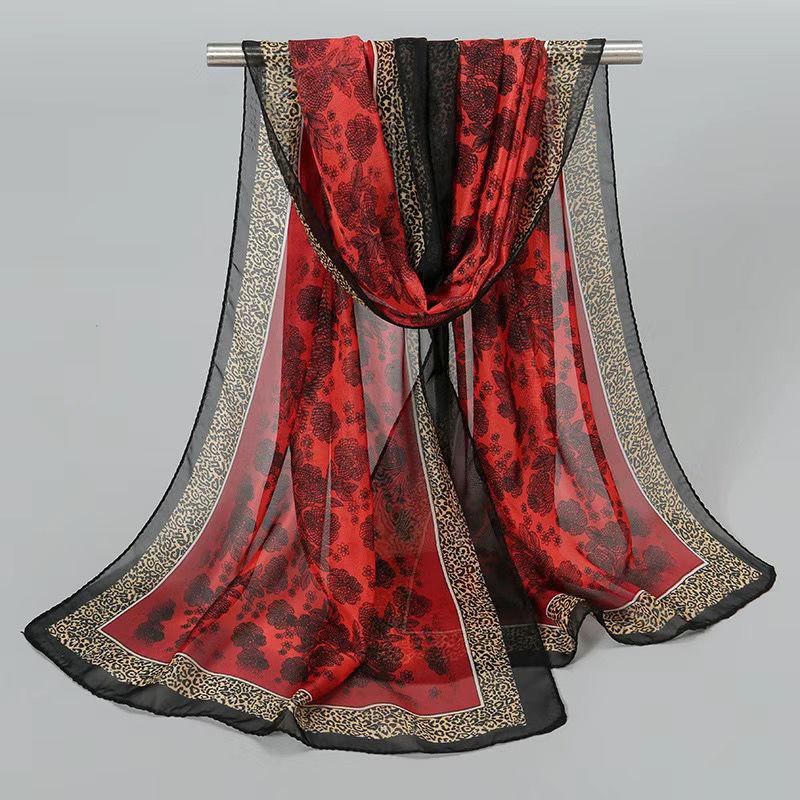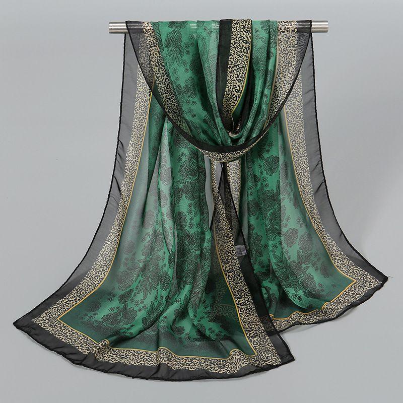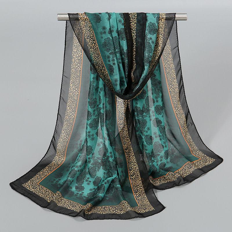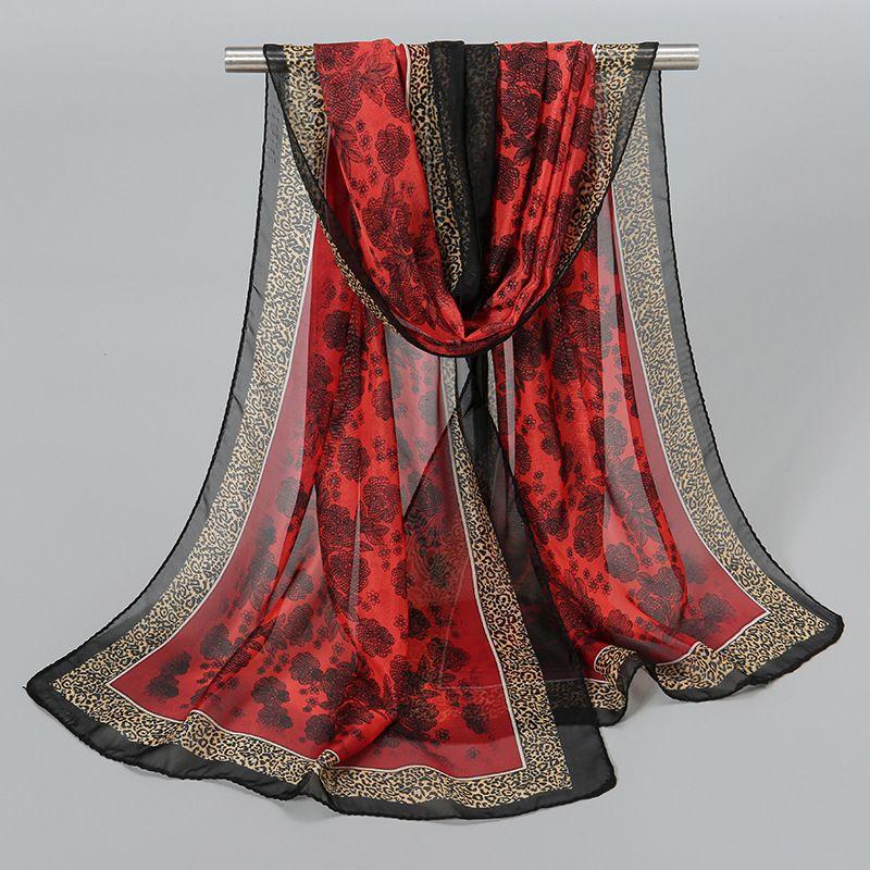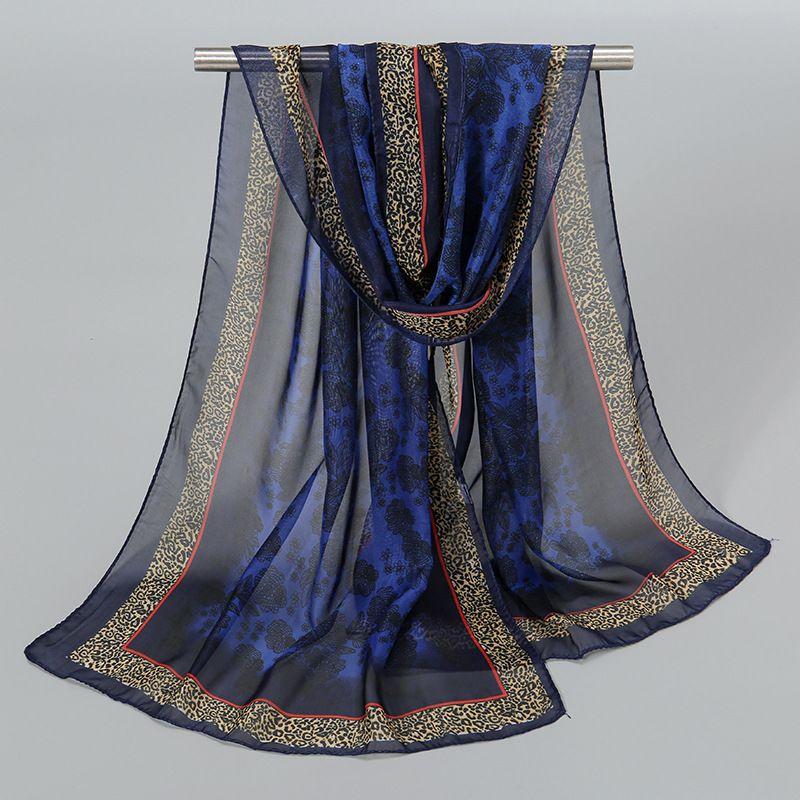 Шифоновый шарф для женщин, летний, тонкий, устойчивый к воздействию солнца, универсальный, напечатанный шифоновый леопардовый принт, декоративный платок-шарф
