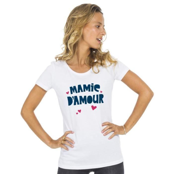 Tshirt - WE ARE FAMILY - MAMIE D'AMOUR - Blanc - Manches courtes - 100% coton Ringspun — купить товар онлайн с бесплатной доставкой до всему миру!