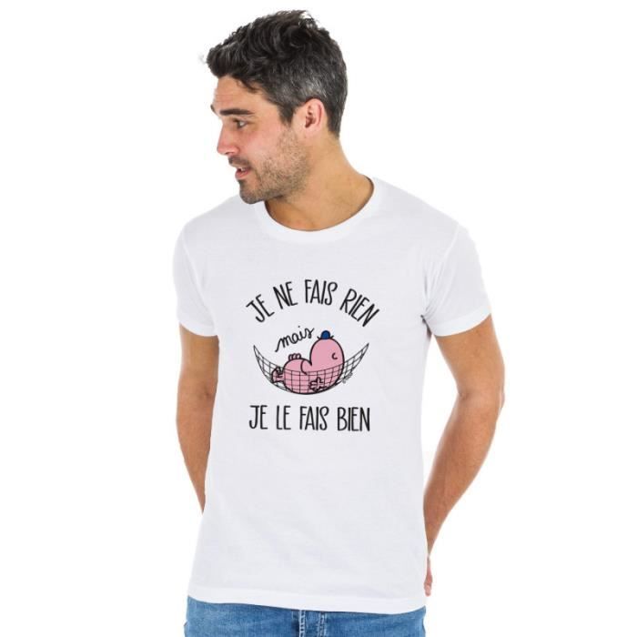 Tshirt - Monsieur Madame - JE NE FAIS RIEN MAIS JE LE FAIS BIEN - 100% coton - Imprimé en France - Confortable