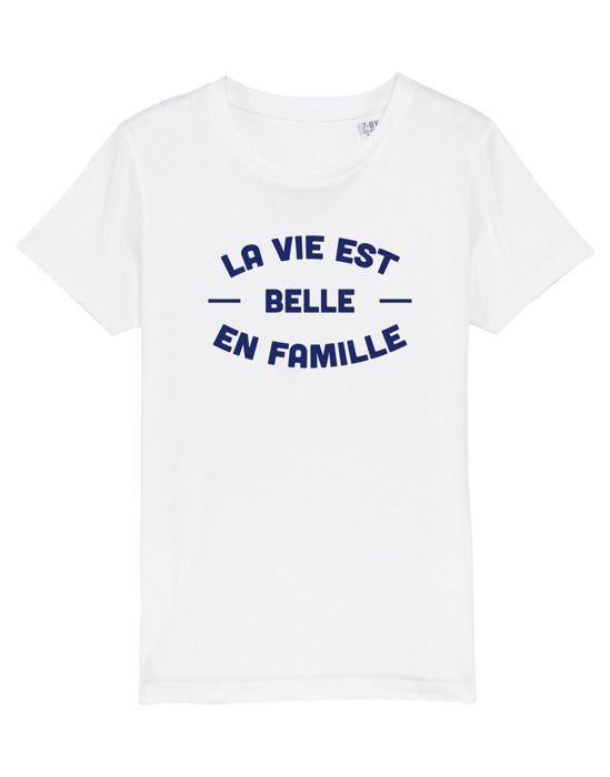 T-shirt Fille La vie est belle en famille 2 face Blanc Coton BIO - Ma Petite Tribu — купить товар онлайн с бесплатной доставкой до всему миру!