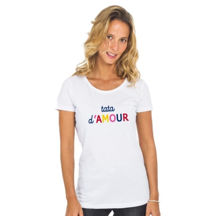 Tshirt TATA D'AMOUR COLORÉE WAF BLANC - Tshirt 100% coton de qualité. T-shirt imprimé en France