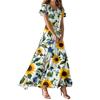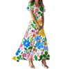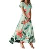 Женское повседневное платье с V-образным вырезом, коротким рукавом, высокой талией и принтом в виде цветов и листьев в стиле ретро