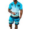 Мужской летний костюм с короткими рукавами и короткими шортами на молнии с принтом, мужской повседневный спортивный костюм