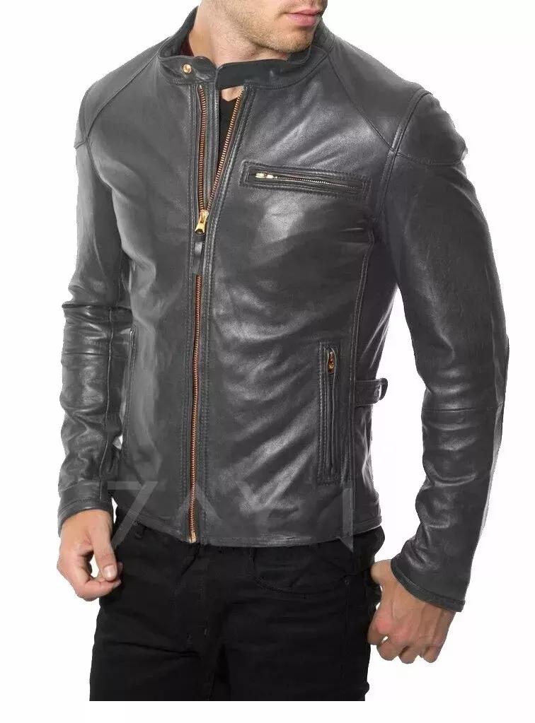 Кожаная Ручной Работы Мягкая Мужская Куртка из Овчины Серая Настоящая Стильная Натуральная Овчина