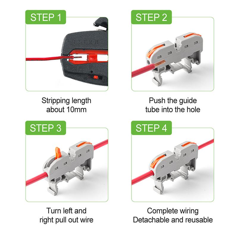 Din Rail Terminal Block 211with Number Strip/Guide Rails/Fixed Accessories Universal Compact Splicing Fast Wire Connector Set