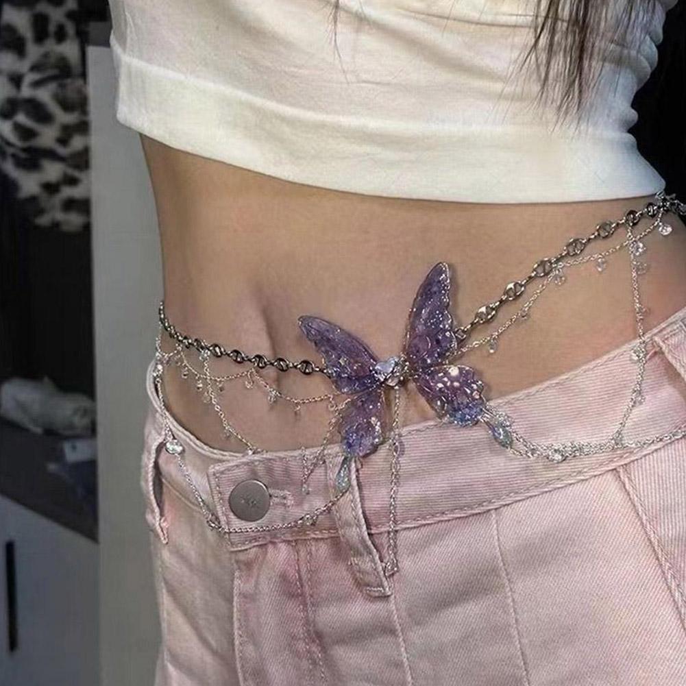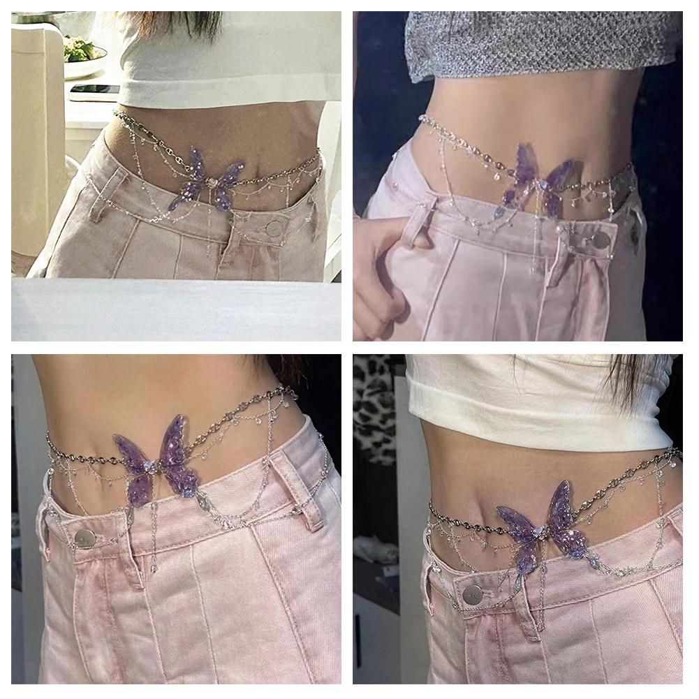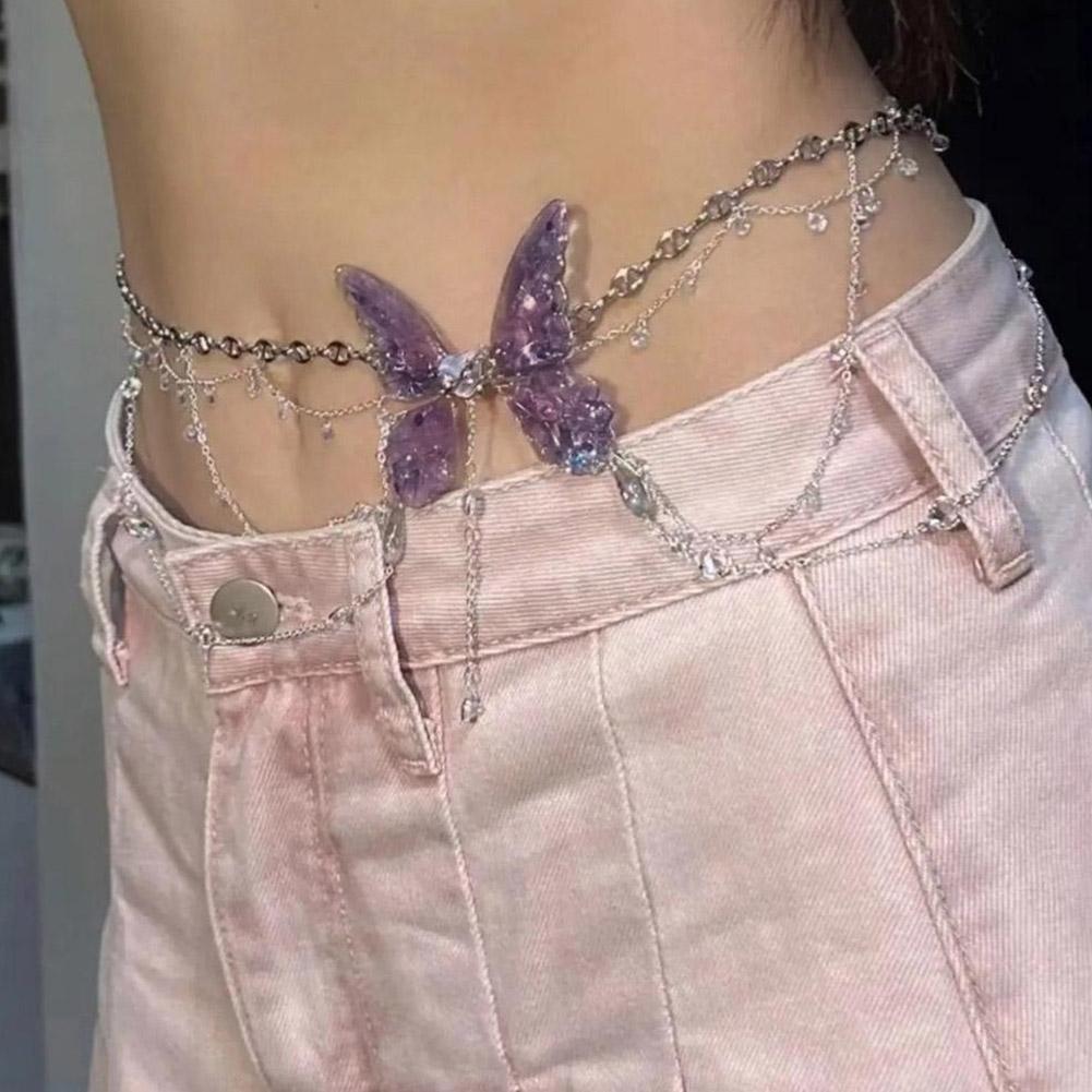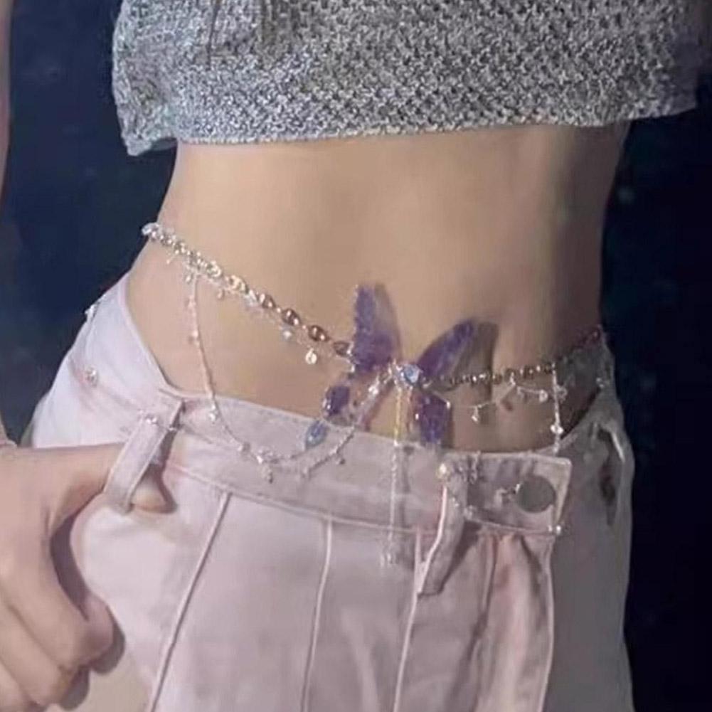Розовая цепочка на талию с бабочками Супер фея кружево с бабочками и крутая розовая цепочка Swee D5P7