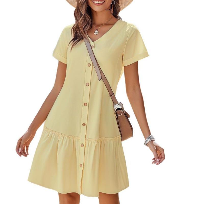Женское платье с пряжкой, свободное летнее платье, повседневное платье с оборками и короткими рукавами