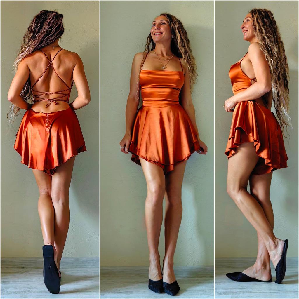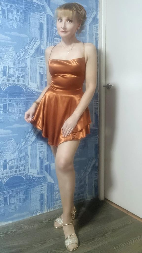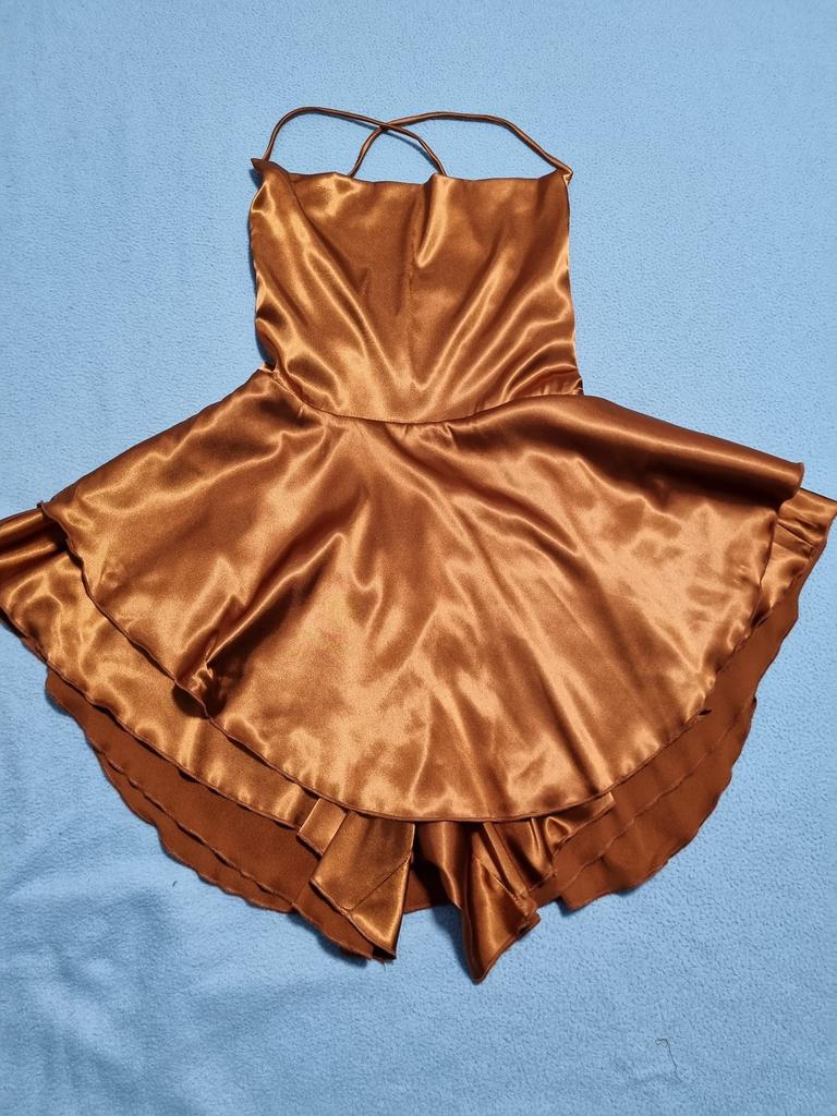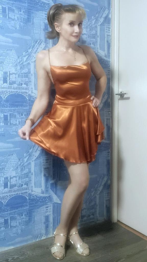 Платье-халтер от Femme Dress Для меня это всё-таки - домашняя одежда. И наличие юбки-шорт, о которых продавец ничего не указал, это очень неудобно! Да, на улице, если ветер поднимет юбку, то под ней окажутся широкие шортики. Однако, чтобы сходить, например, в туалет (да простят меня читатели отзыва, но это естественная потребность в течение дня), нужно полностью разоблачиться, а белья под ним не предусматривается. Затянуть бретельки на спине без посторонней помощи будет уже также проблематично. Именно поэтому, платье не рекомендую, как бы хорошо оно не сидело. В качестве домашней одежды использовать можно. Сшито аккуратно. Ткань приятный к телу смесовый атлас (35% хлопок, 65% полиэстер), легко мнётся, слегка электризуется. Я выбрала цвет тёмно-коричневый, по-факту - бронзовый, но красивый. На параметры 85×64×91, рост 150 см, заказала размер S. Замеры вещи: ширина лифа 33 см, талия 65 см, длина лифа до талии 24 см, длина верхней юбки спереди 33 см, сбоку 21,5 см, длина шорт спереди 42 см, сбоку 28 см. В целом село не плохо, но не комфортно. О покупке решать только вам. Оно подойдёт не на каждую фигуру, и при выборе нужно быть очень осторожным. Личный промокод на скидку 5% на любые товары joom: BQWEJS4029. Приглашаю в мой телеграм-канал followmekanal за актуальными промокодами.