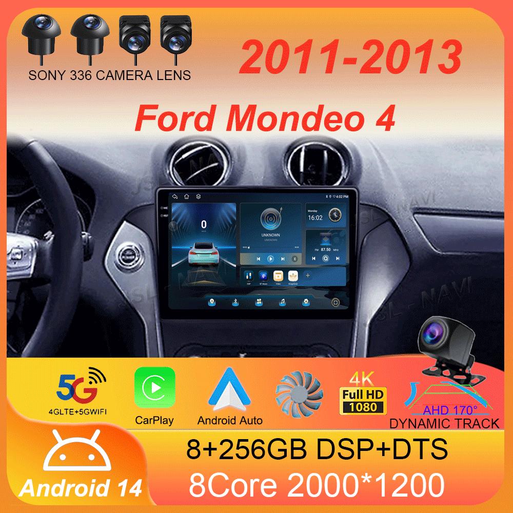 Для Ford Mondeo 4 2011 - 2013 Автомагнитола Android 14 Carplay Auto 2K Экран Мультимедийный плеер Авторадио GPS Стерео 2din Головное устройство