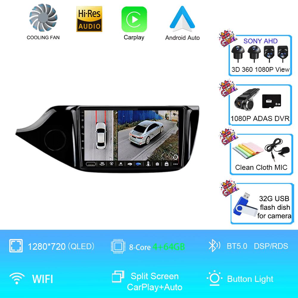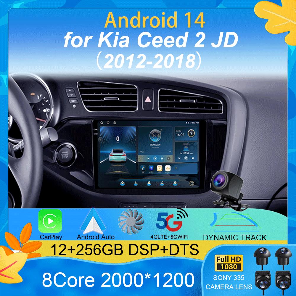 Автомобильное радио Android 14 Wireless Carplay Auto для Kia Ceed 2 JD 2012 2013 2014 2015 2016 2017 2018 Мультимедийный проигрыватель 2 Din GPS 4G